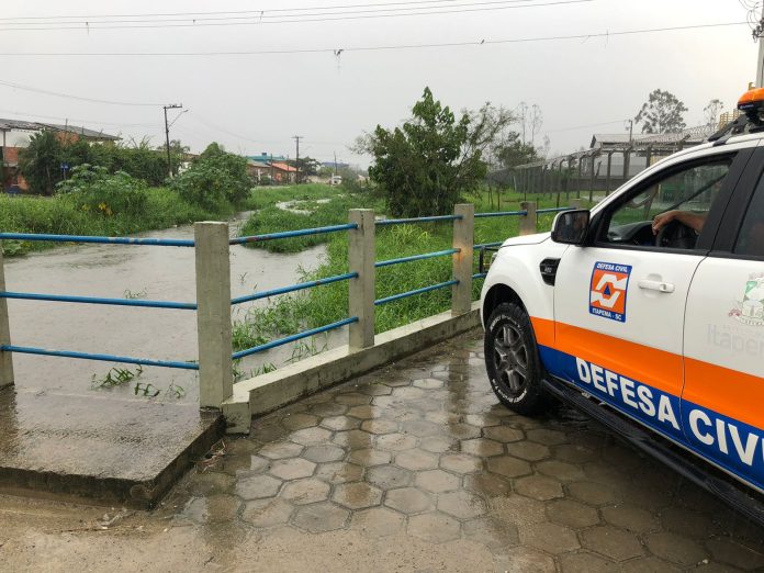 A Prefeitura de Itapema informa que, diante das chuvas intensas registradas nas últimas horas e do alerta da Defesa Civil, há pontos de alagamento, principalmente na região central — nas imediações das ruas Governador Celso Ramos e 102 — e no bairro Ilhota.