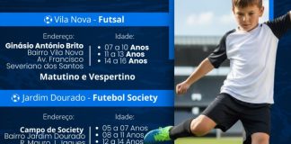Inscrições abertas para as Escolinhas de Futebol e Futsal de Porto Belo 2026