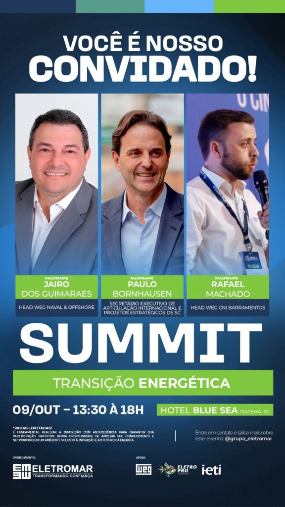 Summit do Grupo Eletromar, em Itapema, conecta soluções WEG, cadeia naval e agenda pública para impulsionar o desenvolvimento sustentável; Evento, que acontece no Hotel Blue Sea nesta quinta-feira (9) reunirá representantes da indústria, governo, setor naval e academia para discutir soluções reais e aplicáveis rumo a um futuro mais sustentável