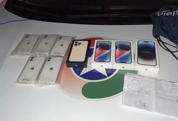 Durante abordagem, a polícia encontrou nove aparelhos celulares da marca Apple. Eram cinco iPhones 11, dois iPhones 14, um iPhone 14 pro Max e um iPhone 13 pro. Todos os eletrônicos estavam sem a documentação necessária, segundo a guarnição. O valor das mercadorias apreendidas é de aproximadamente R$ 40 mil.