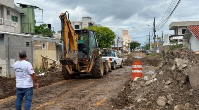 A Secretaria de Obras de Porto Belo segue atuando na manutenção da Rua São Paulo, que está em fase de obras e receberá pavimentação asfáltica. Na última quarta-feira (25), a equipe já havia realizado a colocação de material para reparos na via, com o objetivo de melhorar as condições de tráfego e preparar o local para as próximas etapas da obra. No entanto, em razão da chuva registrada durante a madrugada, a situação do trecho se agravou, exigindo o retorno das equipes nesta quinta-feira para novos reparos e reforço do material. Paralelamente, a equipe da Porto Belo Abastecimento também está no local executando interligações da rede de água. O trabalho de manutenção ocorre até que seja realizada a drenagem da parte restante da via, etapa necessária antes da aplicação da camada asfáltica.