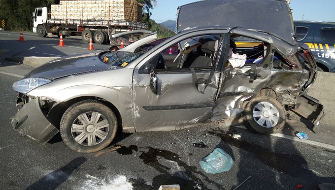 Um veículo com placa de Itapema se envolveu em um grave acidente de trânsito na tarde de sexta-feira (7), no km 13,3, da BR-101, em Garuva. A batida resultou em uma vítima fatal, além de três feridos, entre eles, dois em estado grave.